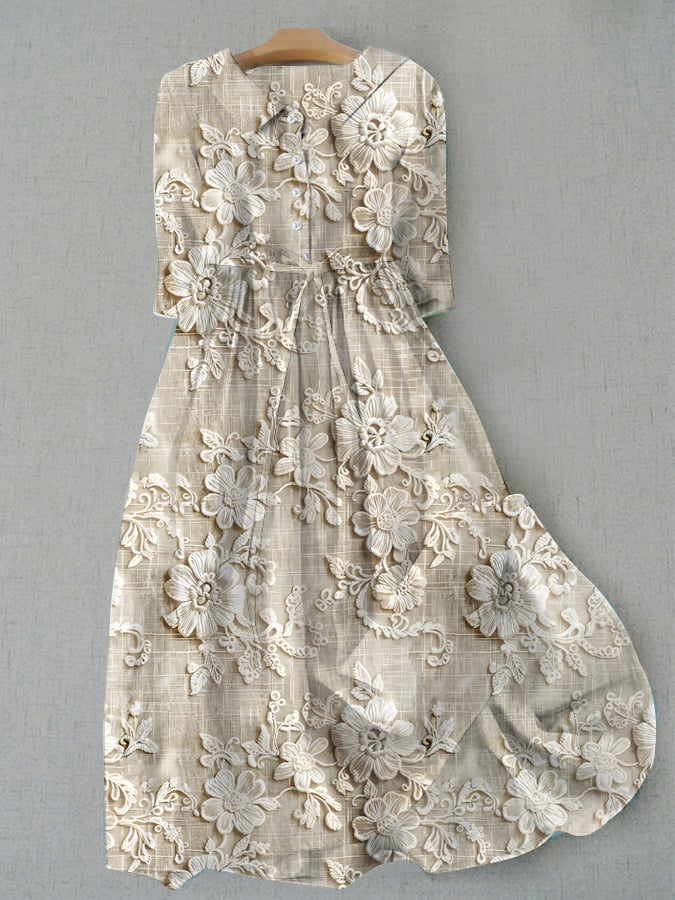 Women's Casual Elegant 3/4 Sleeve Cotton And Linen Dress