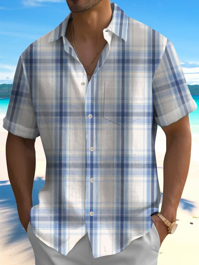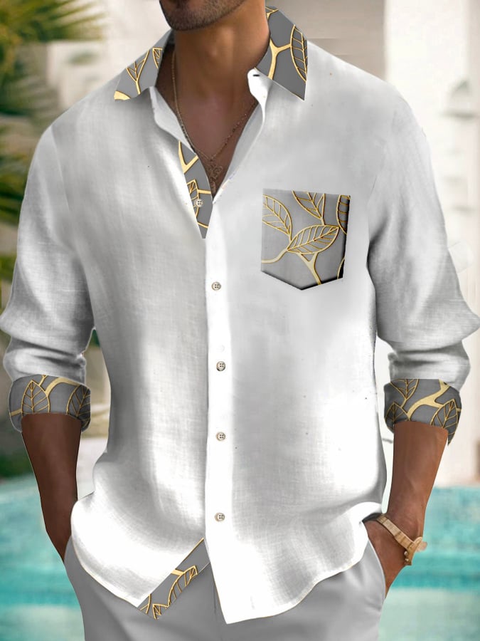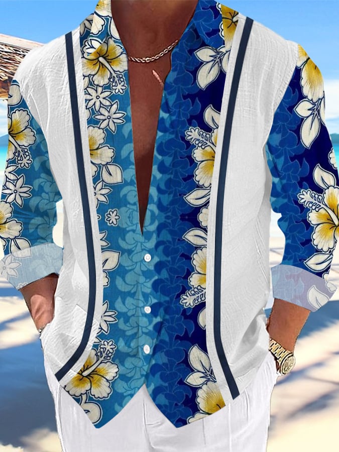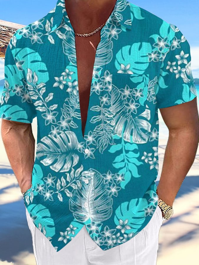 Men's Hawaiian Print Fashionable Resort Casual Shirt (With Pockets)