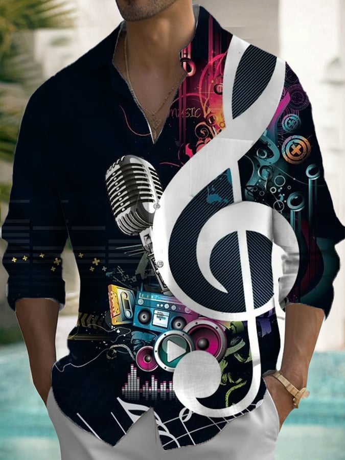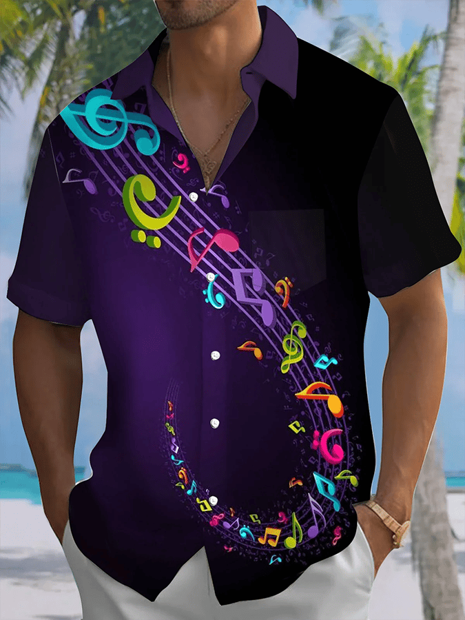 Men's Fashion Trendy Music Element Printed Casual Short-Sleeved Shirt