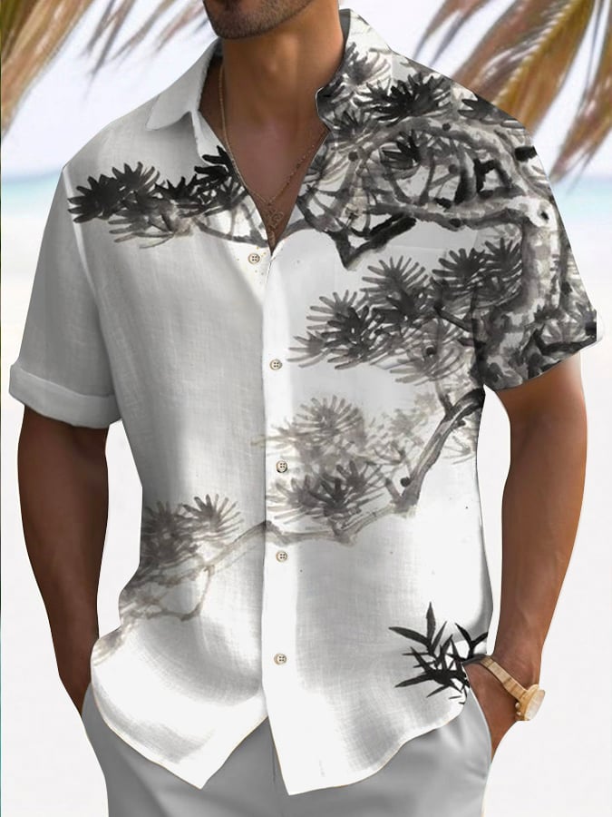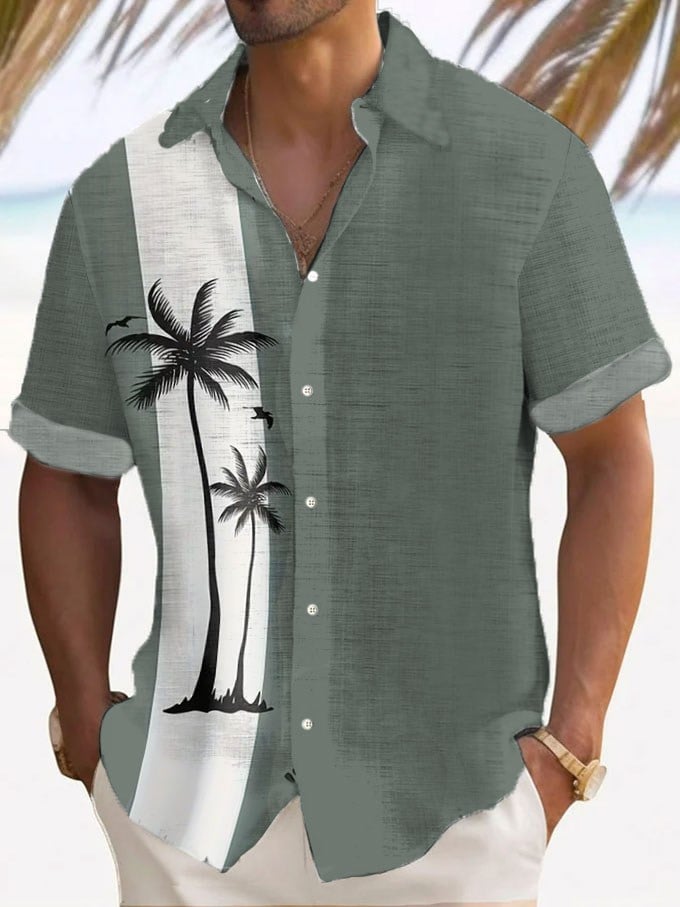 Men's Hawaiian Resort Coconut Tree Print Lapel Shirt