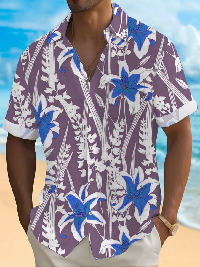 Men's Hawaiian Print Resort Casual Shirt (With Pockets)