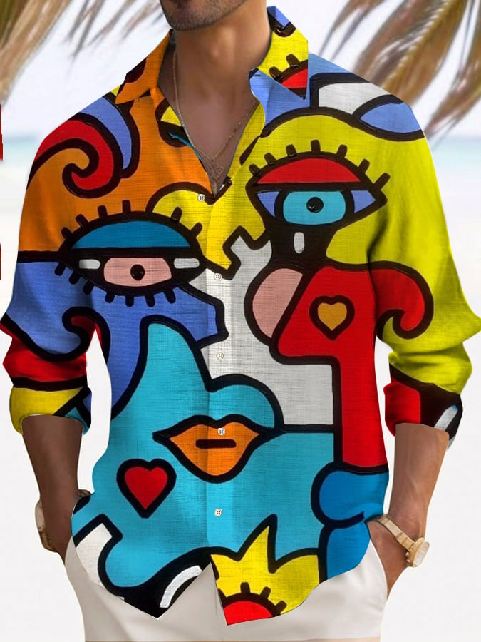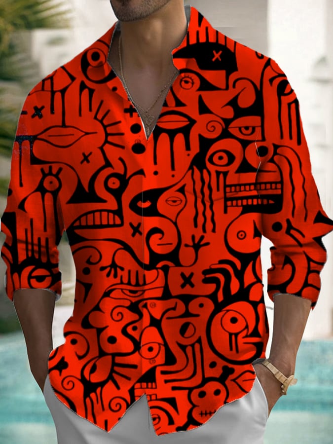 Men's Abstract Face Long Sleeve Pocket Shirt