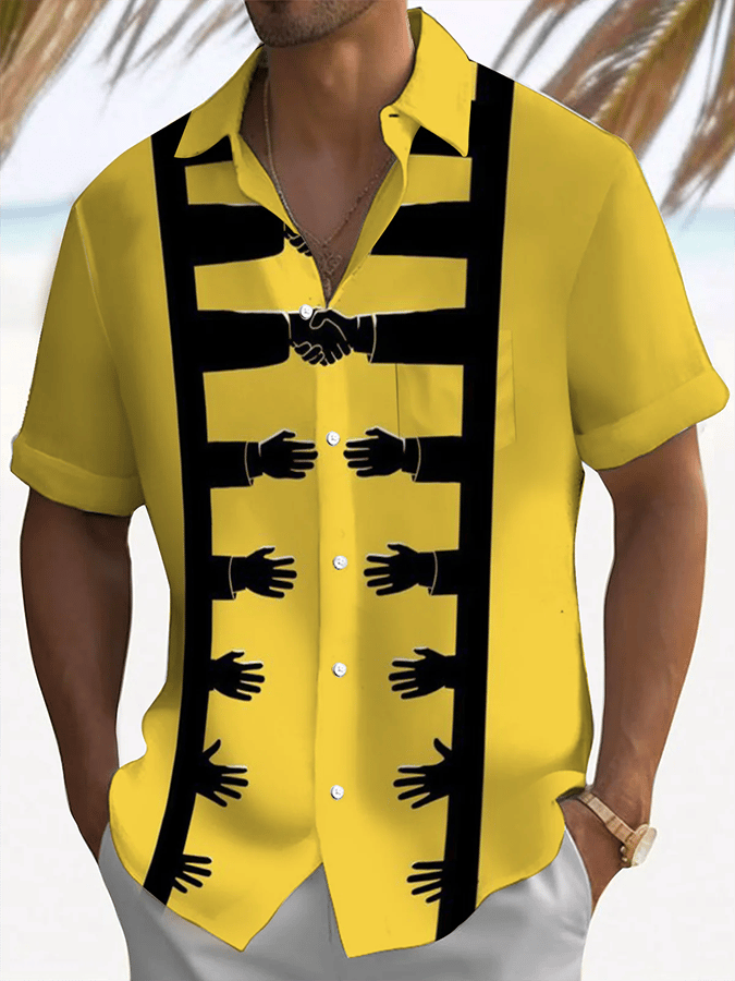 Men's Art Hawaiian Short Sleeve Pockets Shirt