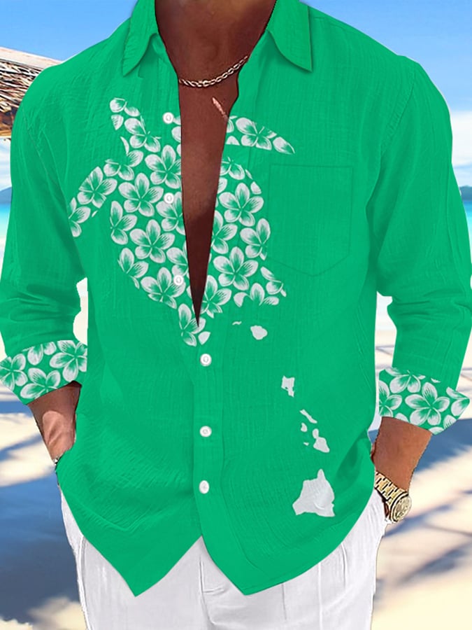 Men's Casual Hawaiian Turtle Print Lapel Shirt