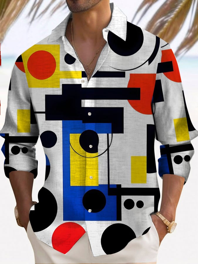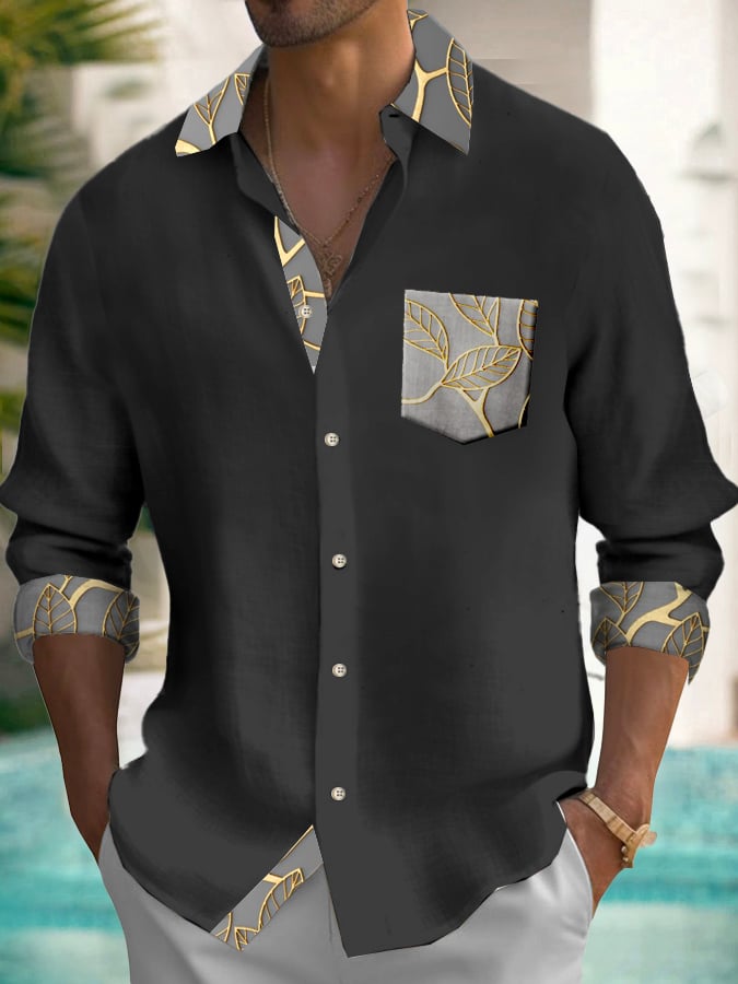 Casual Fashion Printed Contrast Color Men's Long Sleeve Shirt