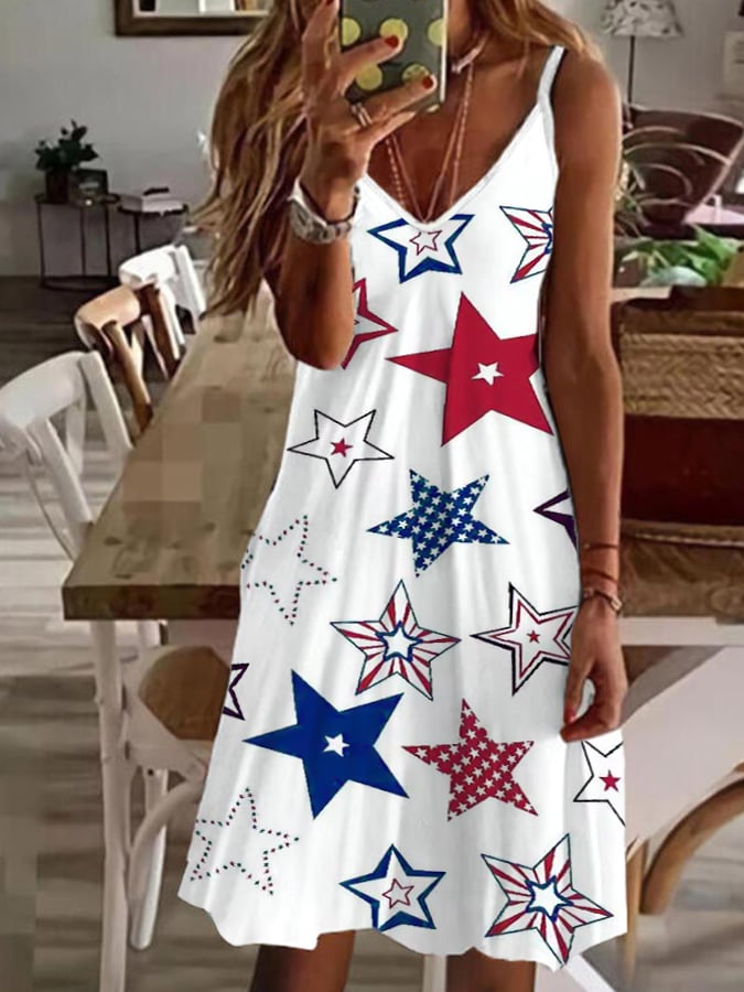 Women's Independence Day Flag Print V-Neck T-Shirt