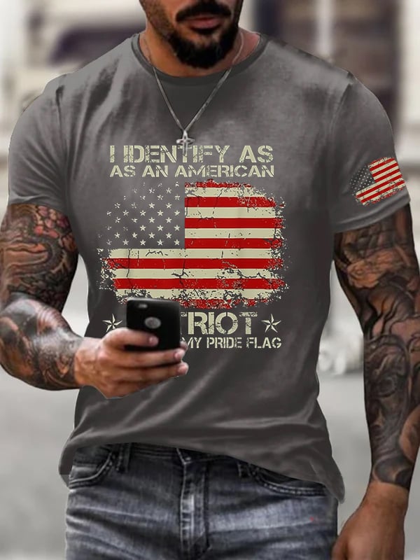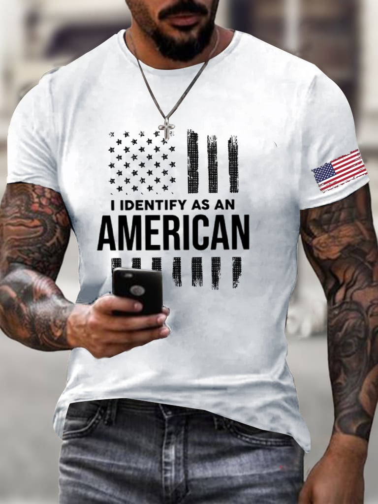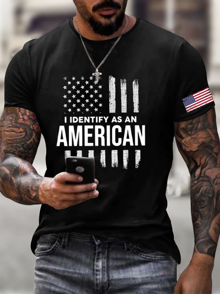 Men's I Identify As An American Printed Round Neck T-Shirt