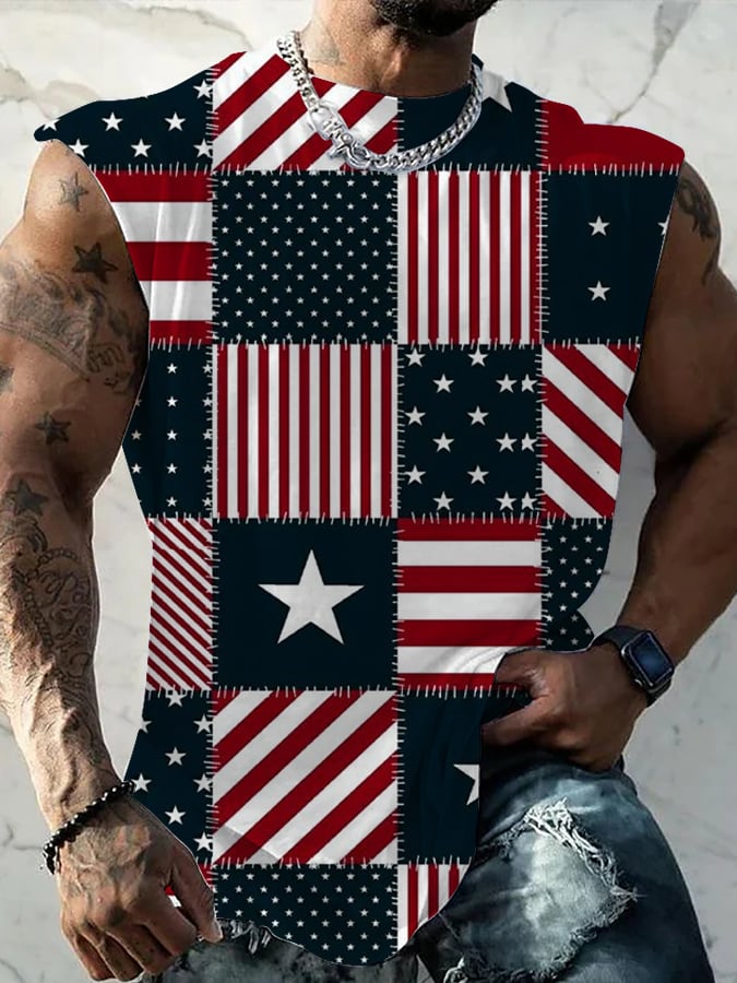 Men's Independence Day Patch Splicing The National Flag Printed Tank Top