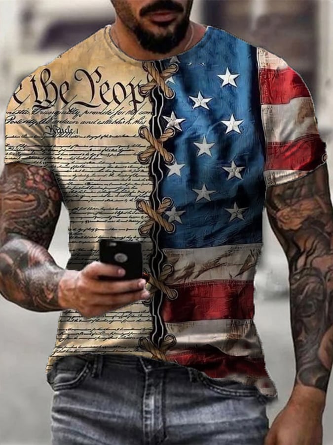 Men's Independence Day We The People Vintage Print Casual T-Shirt