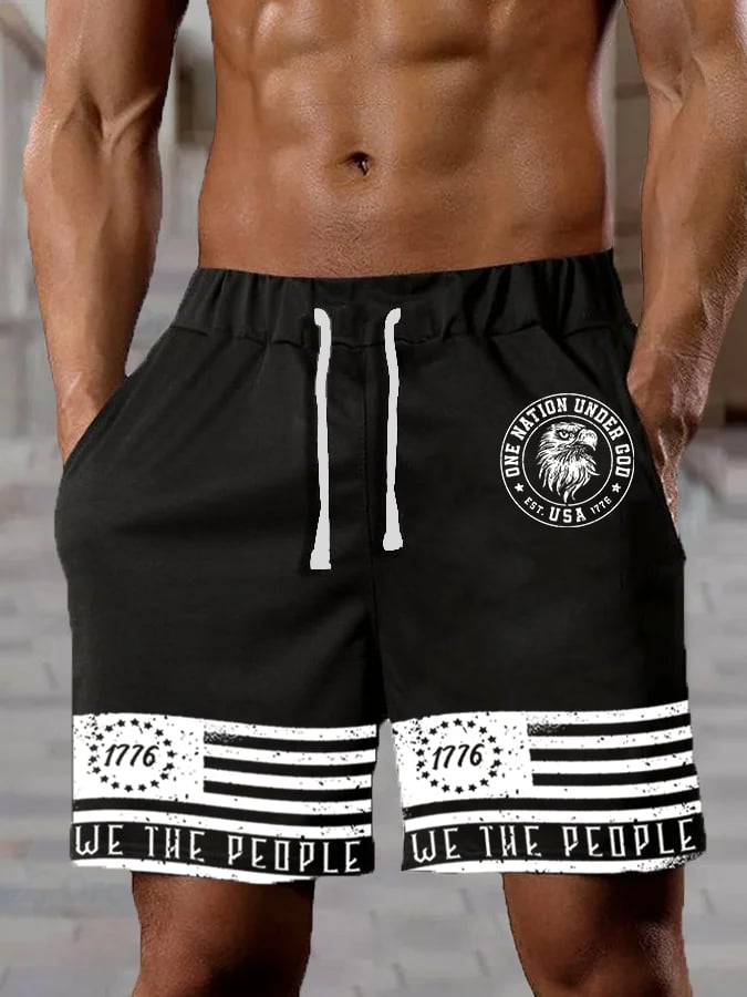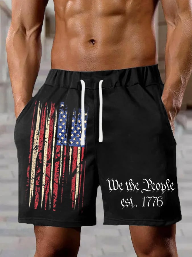 Men's We The People Est. 1776 Independence Day America Flag Print Casual Shorts