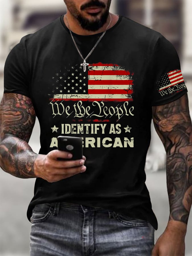 Men's We The People I Identify As An American Printed Round Neck T-Shirt