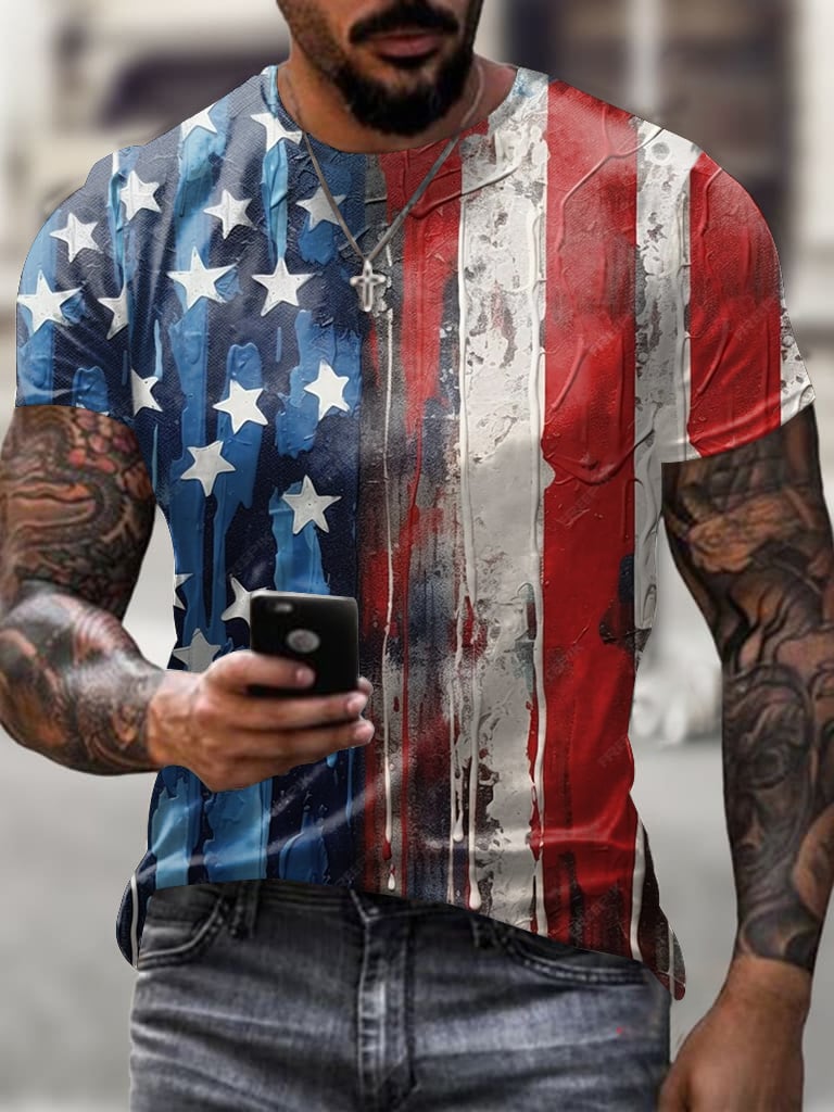 Men's Independence Day American Flag Casual Round Neck T-Shirt