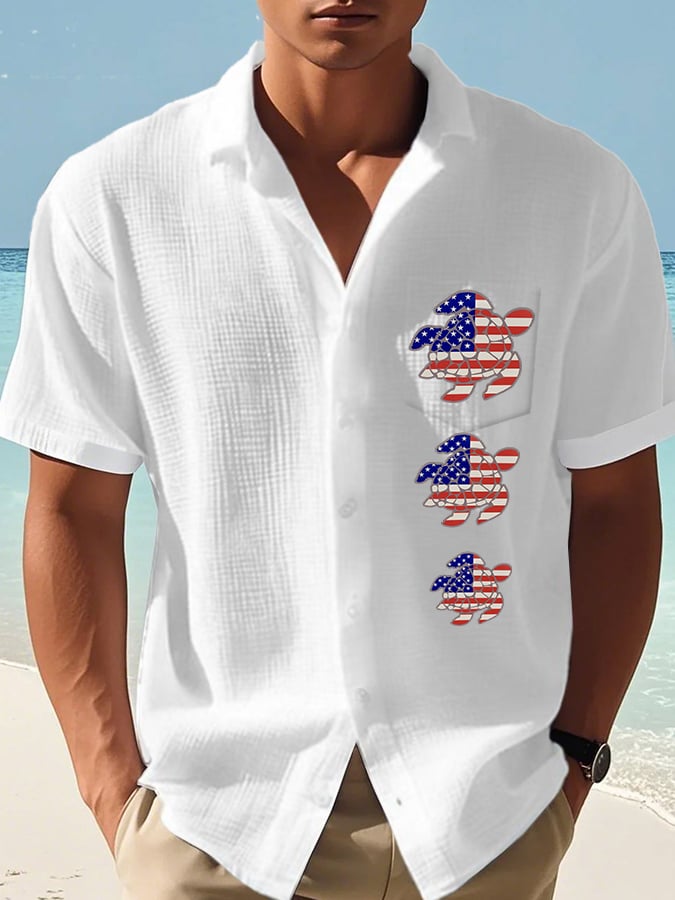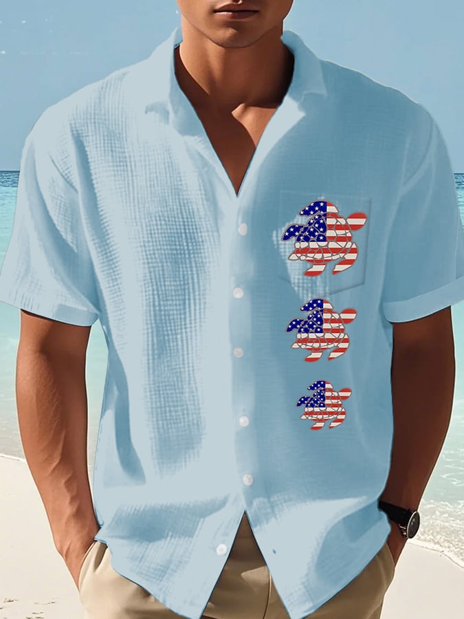 Men's Casual Vacation Independence Day Print Waffle Pocket Shirt