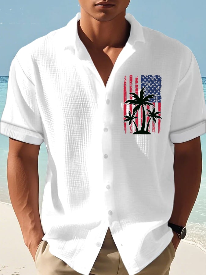 Men's Casual Vacation Independence Day Print Waffle Pocket Shirt