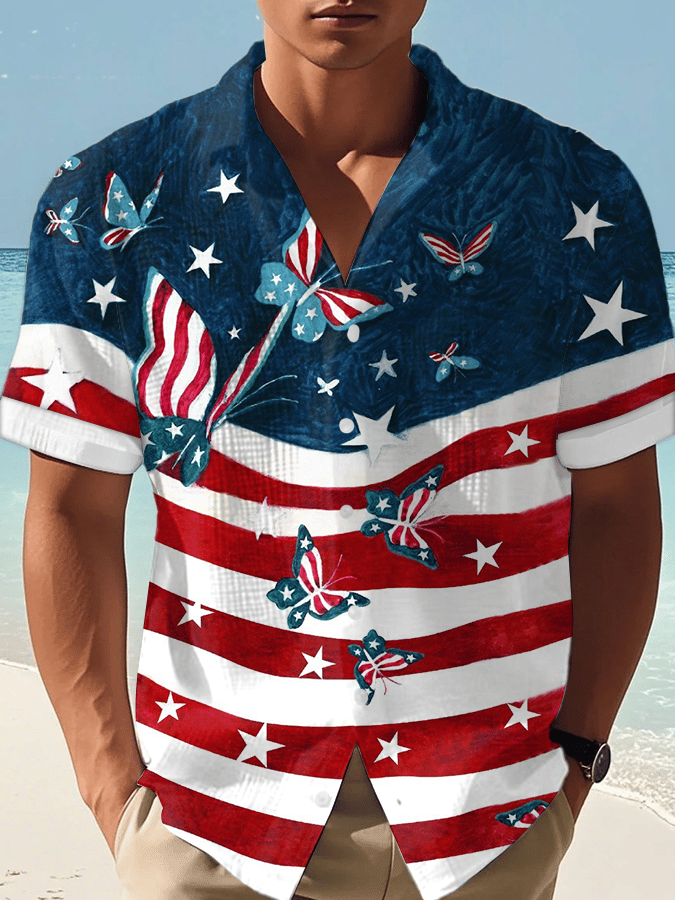 Men's Independence Day Flag Print Casual Waffle Shirt