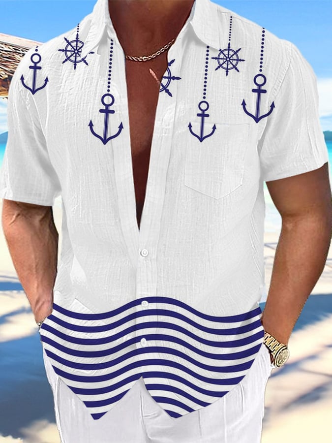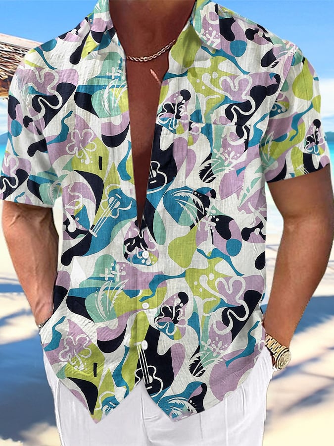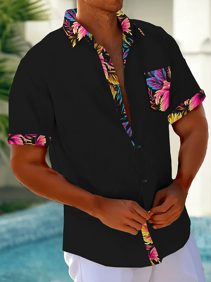 Men's Resort Style Contrast Print Casual Short Sleeve Shirt