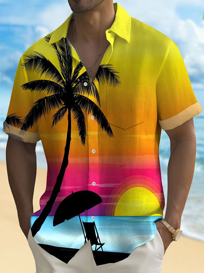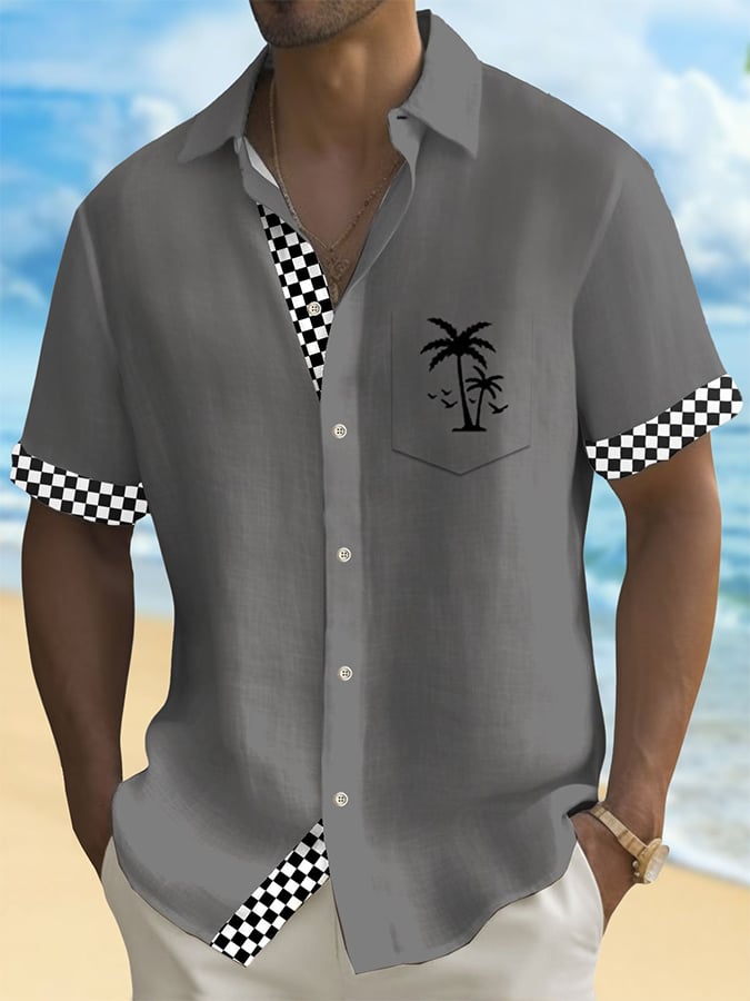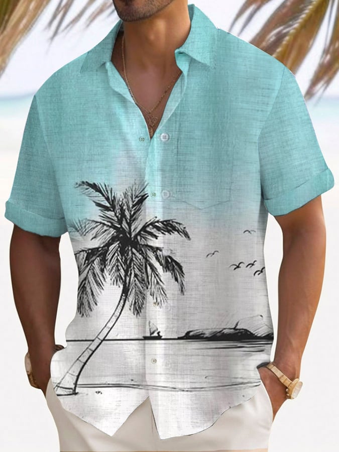 Men's Hawaiian Coconut Tree Short Sleeve Pocket Shirt
