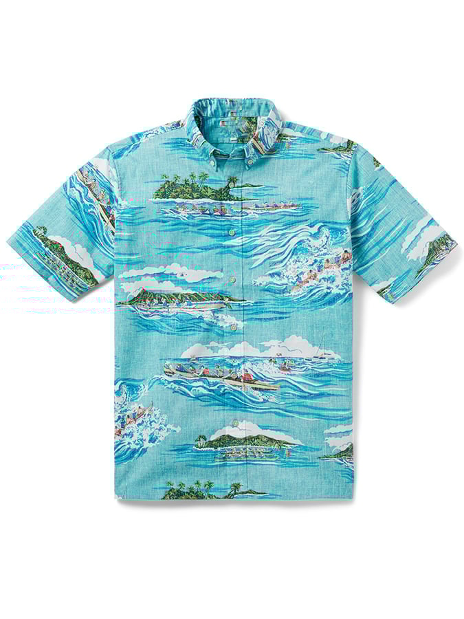 Men's Hawaiian Island Print Short Sleeve Pocket Shirt