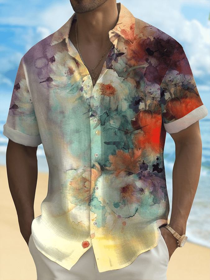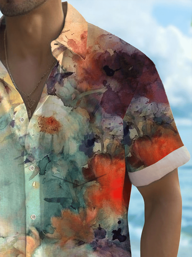 Men's Art Hawaiian Short Sleeve Pockets Shirt