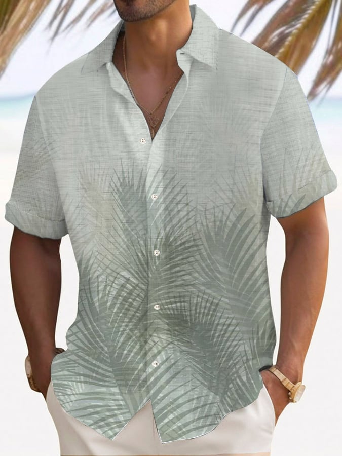 Men's Palm Tree Leaves Short Sleeve Shirt