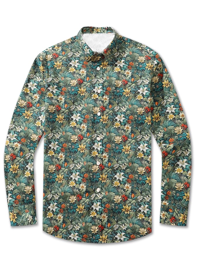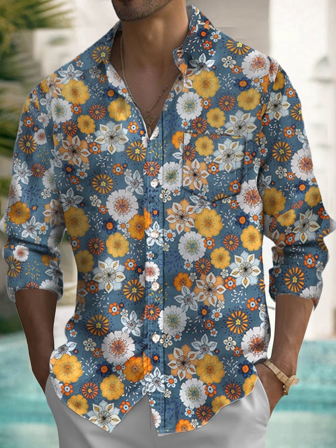 Men's Vintage Floral Pocket Long Sleeve Shirt