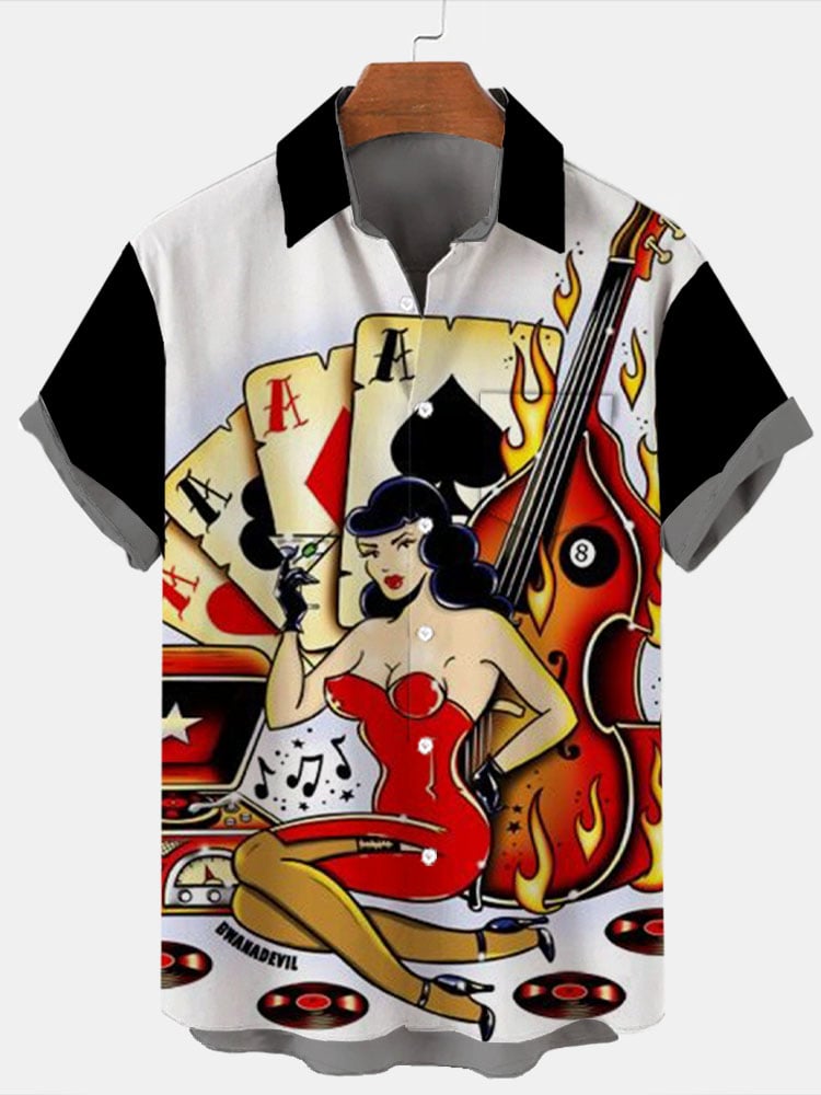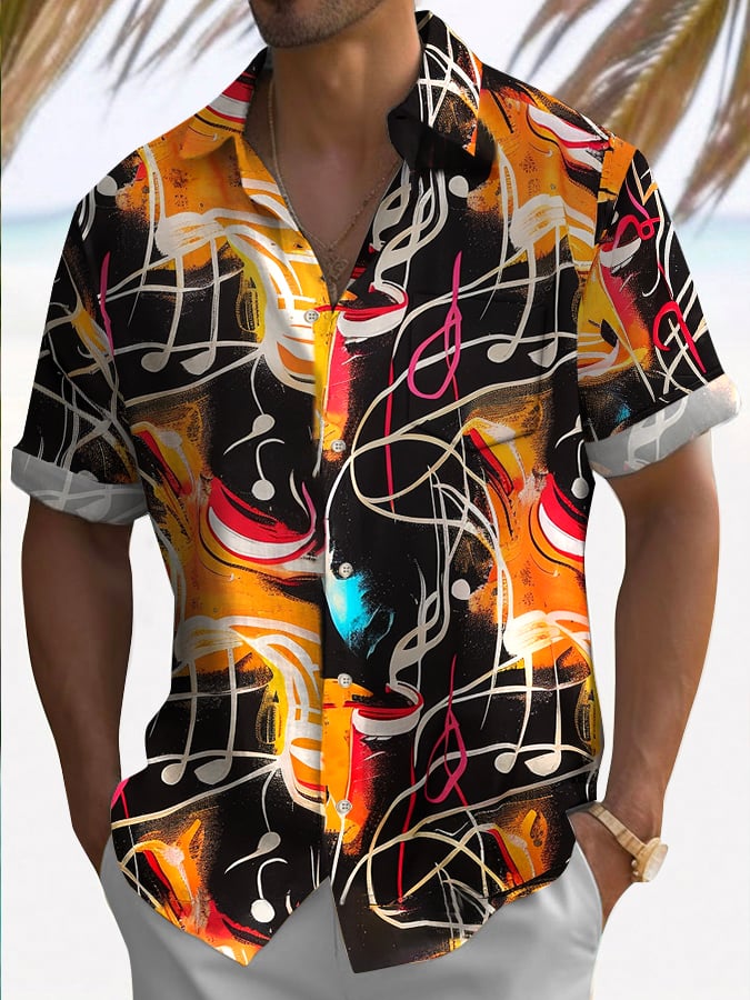 Men's Fashion Casual Art Music Print Shirt