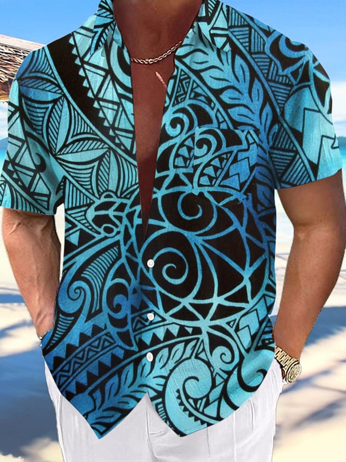 Men's Art Gradient Hawaiian Resort Casual Shirt (With Pockets)