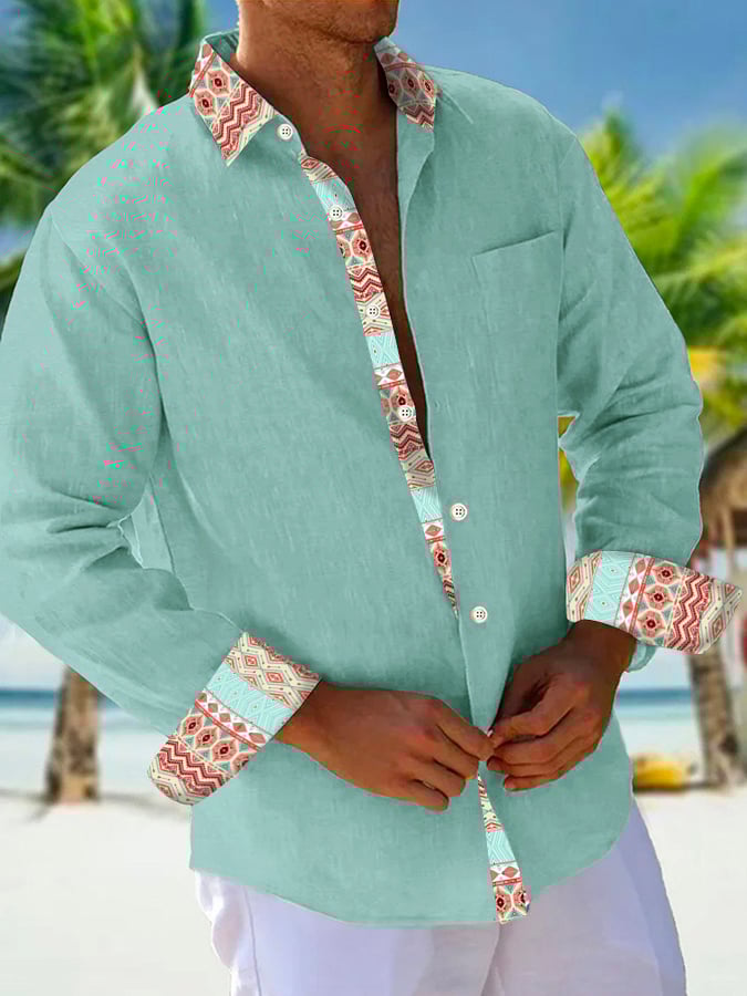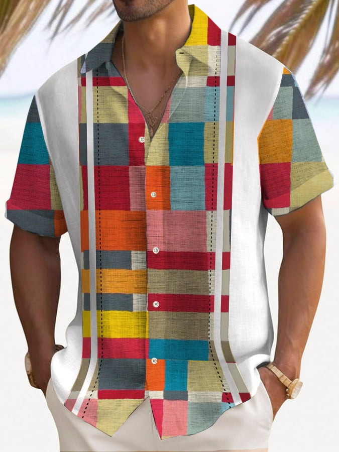 Men's Plaid Patchwork Printed Fashionable Holiday Casual Shirt