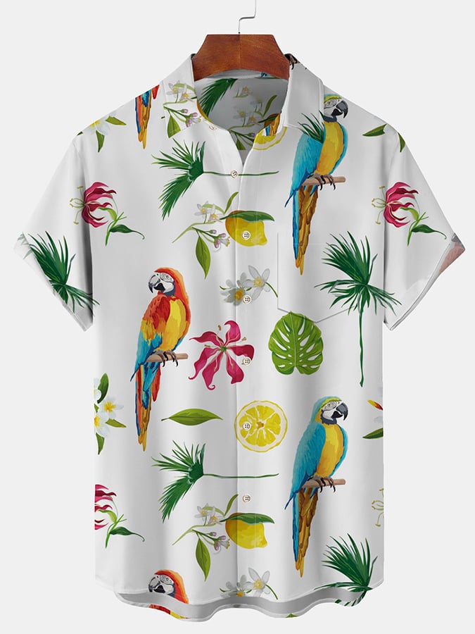 Men's Casual Vacation Hawaiian Parrot Print Shirt