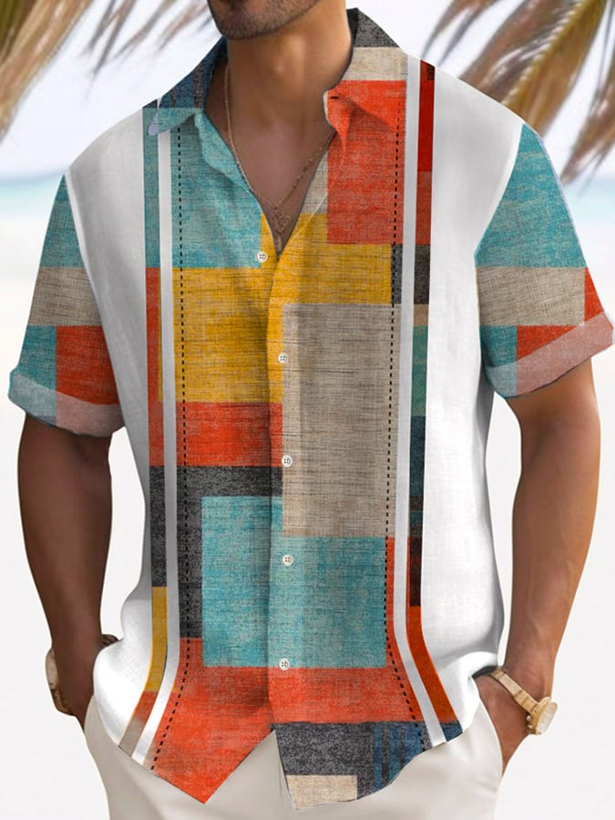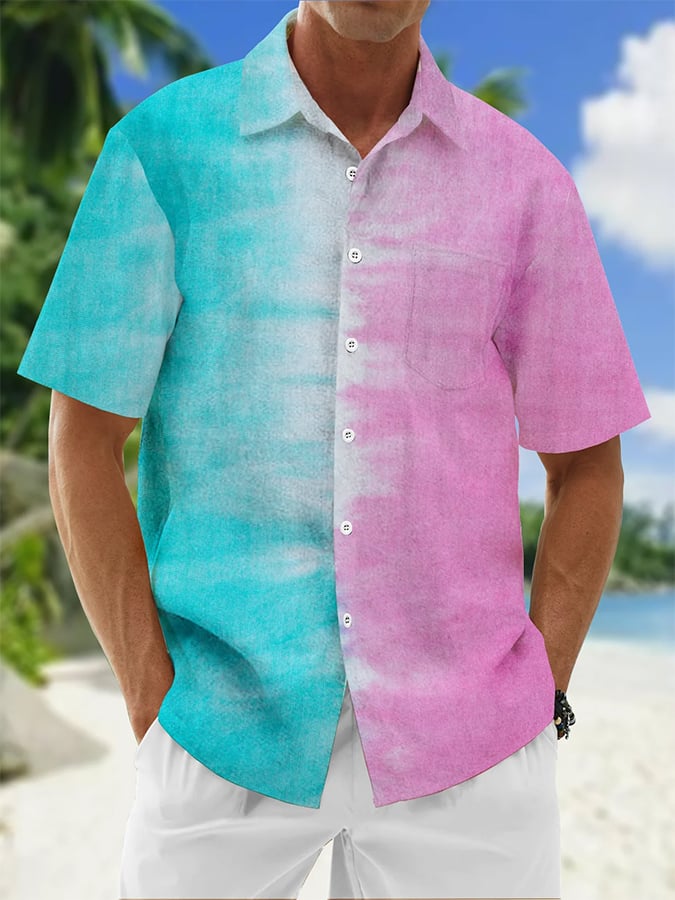Men's Resort Style Contrast Print Casual Short Sleeve Shirt