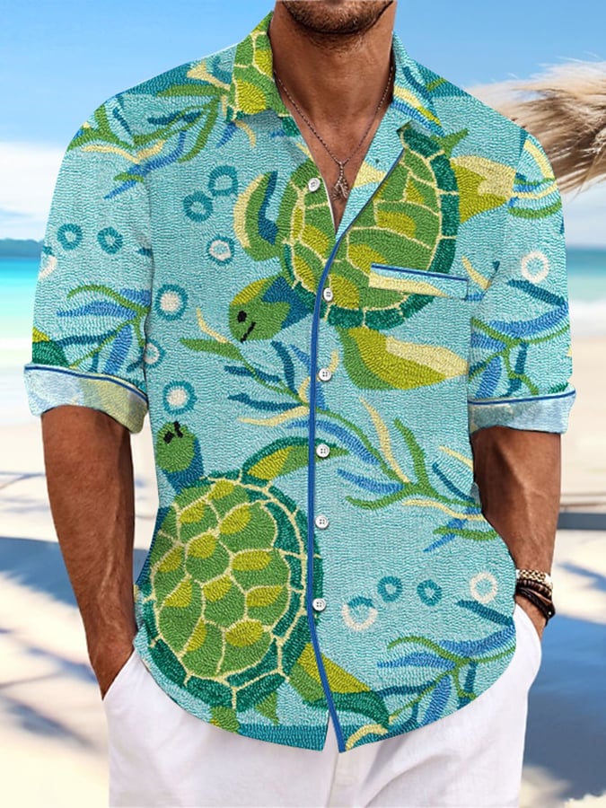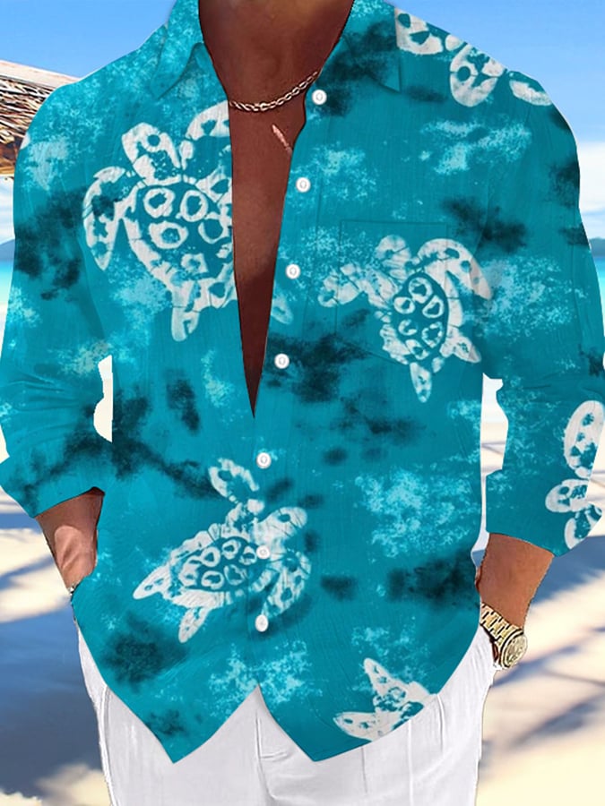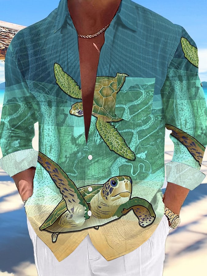 Men's Casual Hawaiian Turtle Print Lapel Shirt