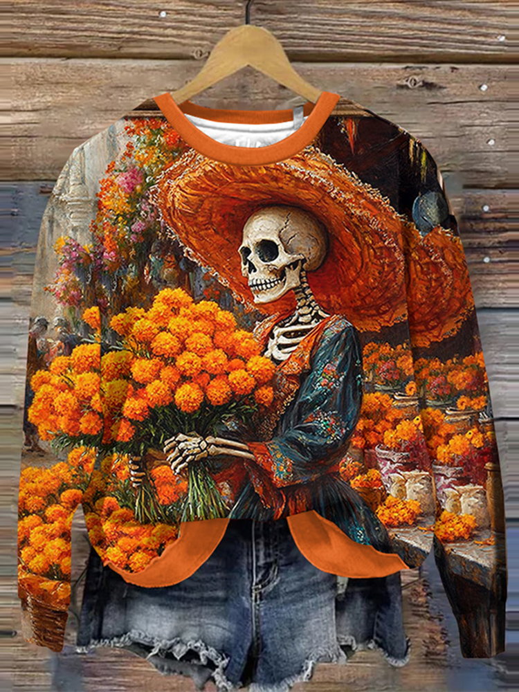 Vintage Classy Mexican Sugar Dia De Los Muertos Day Of The Dead Inspired Pattern Print Women's Sweater