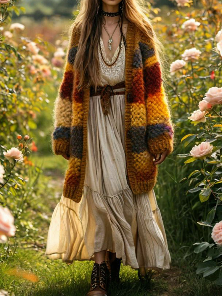 Women's Rainbow Stripe Pattern Print Cardigan