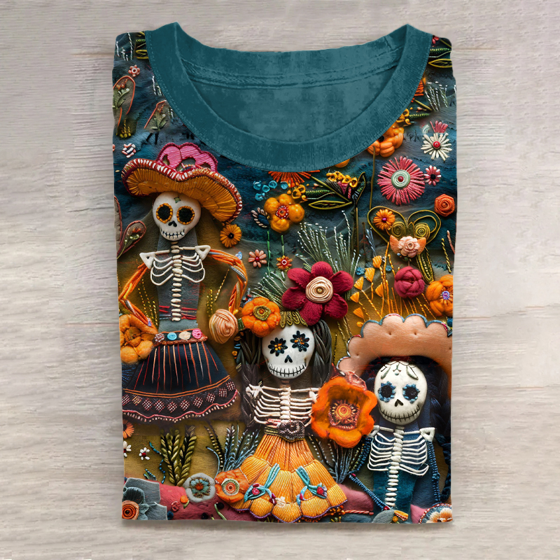 Mexican Cute Sugar Skull Day Of The Dead Inspired Cotton Graphic T-Shirt