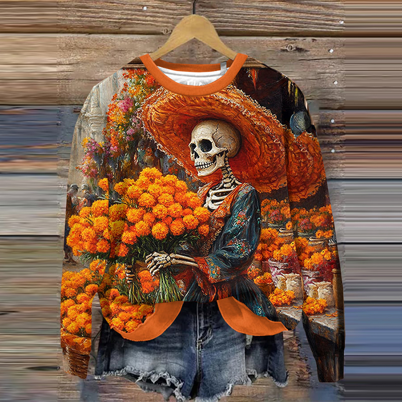 Mexican La Catrina Day Of The Dead Inspired Art Printed Sweatshirt