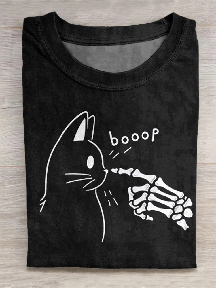 Western Day Of The Dead Cat Skull Printed T-Shirt