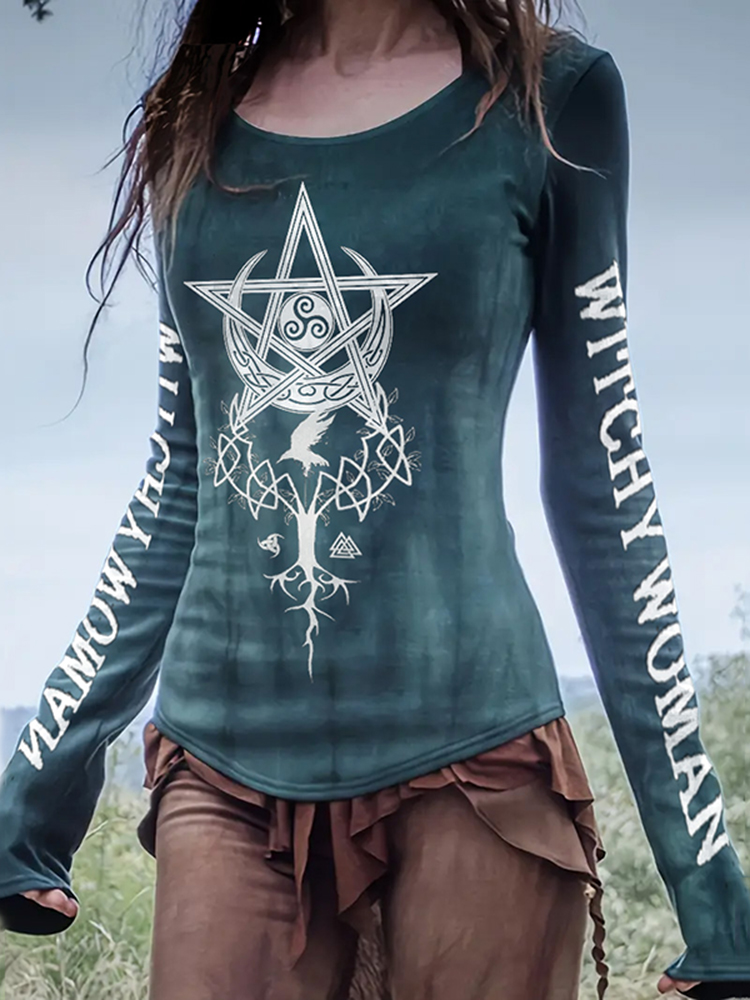 Women's Star Moon Witch Circular Magic Circle Life Of Tree Art Print Tops