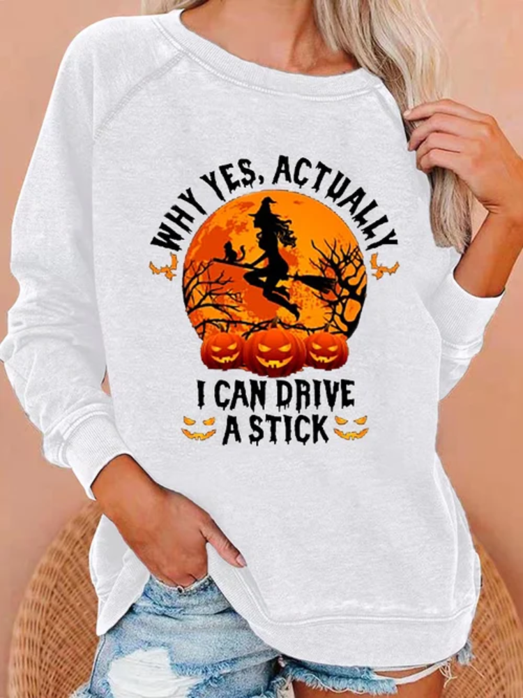 Women's Halloween Why Yes Actually I Can Drive A Stick Print Casual Crew neck Sweatshirt