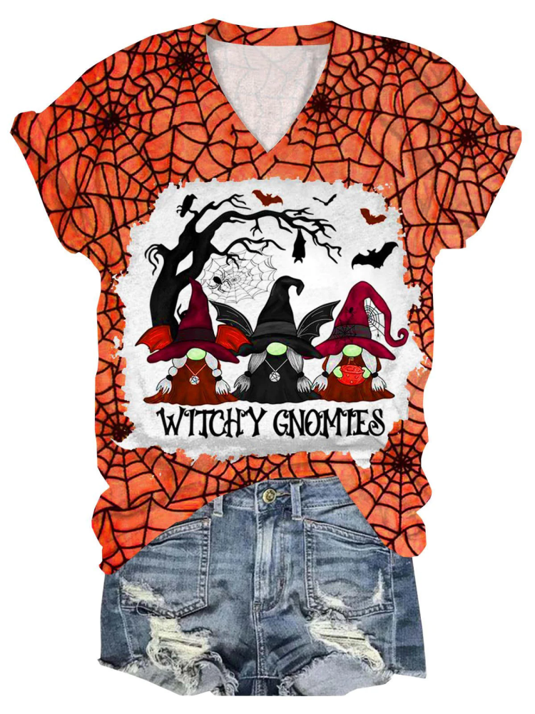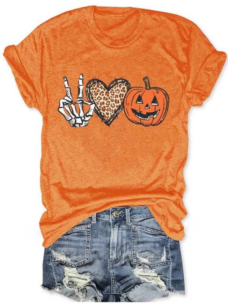 Halloween Skull Hand Heart Pumpkin Print Crew Neck Casual T Shirt