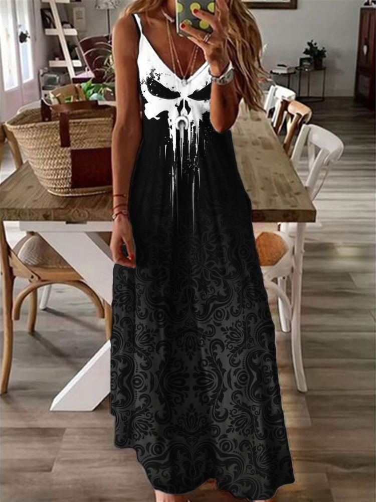 Skull Contrast Gothic Pattern Gradient Cami Maxi Dress
