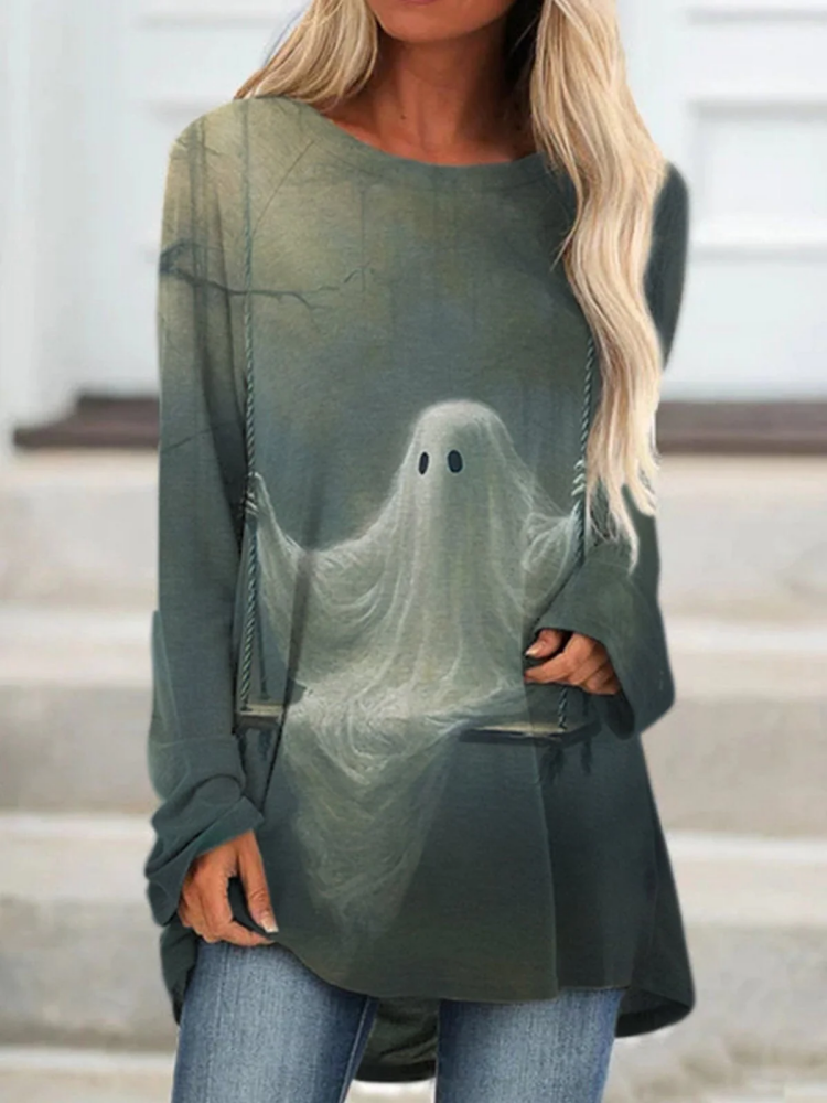 Day Of The Dead Skull Printed Round Neck Tunic