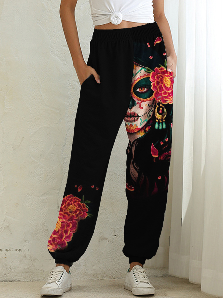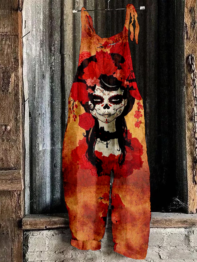 Day of the Dead Floral Woman Art Loose Fit Jumpsuit