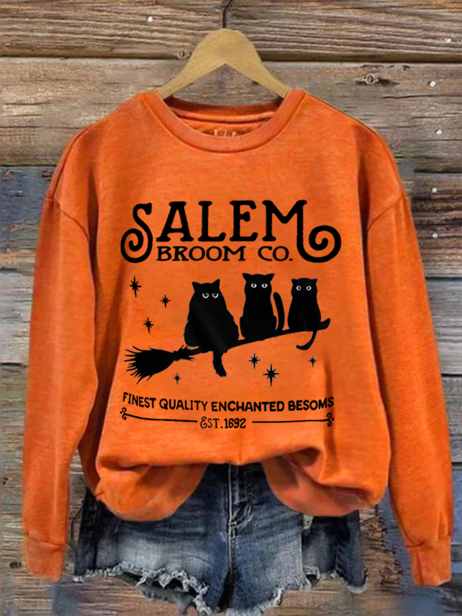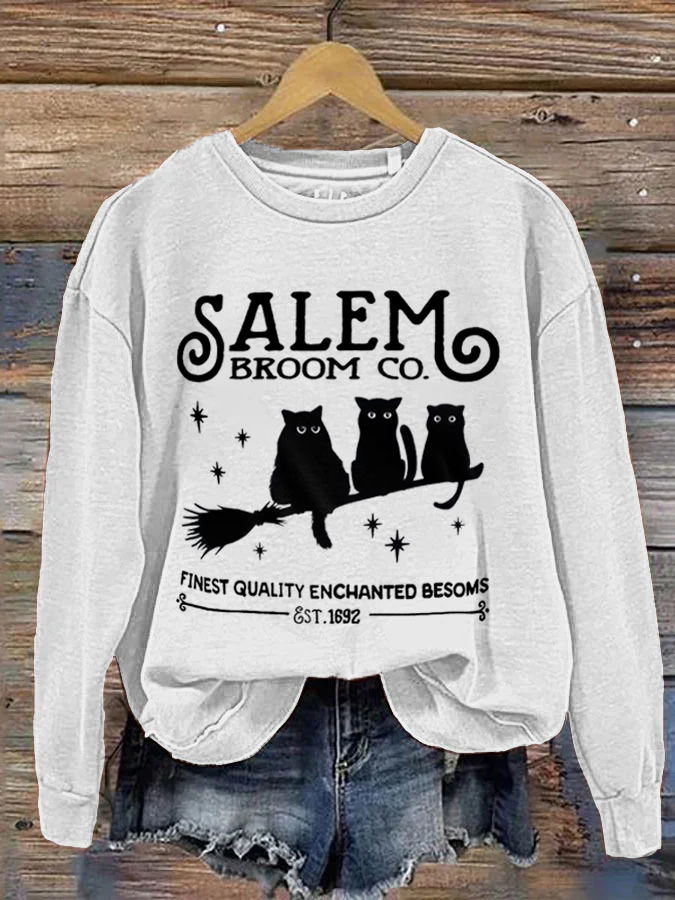 Best Quality Magic Broom Est.1692 Halloween Black Cat Print Sweatshirt