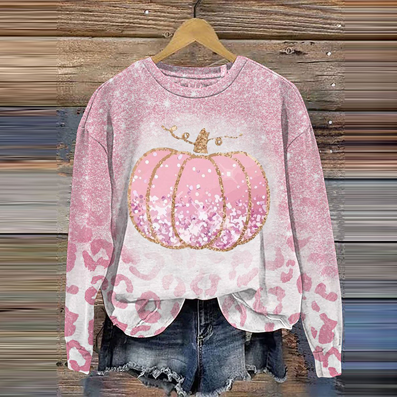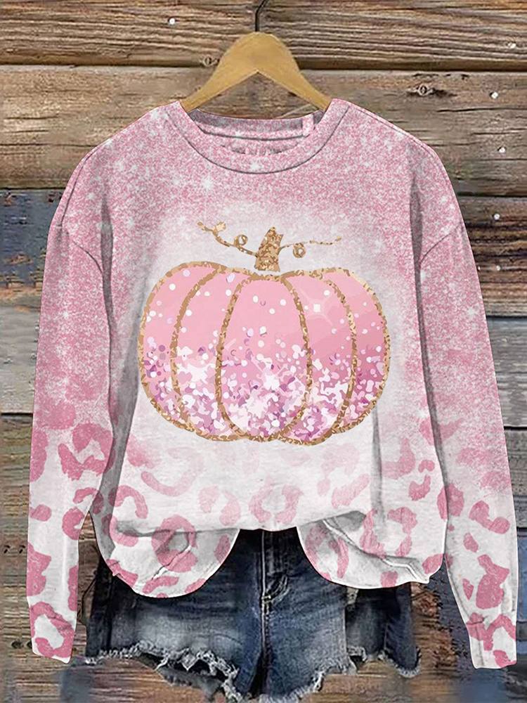 Halloween Pumpkin Breast Cancer Awareness Print Casual Sweatshirt