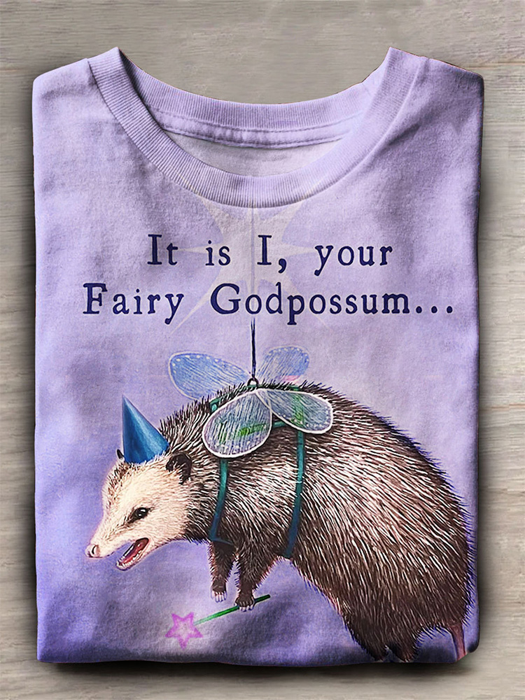 Funny Possum Print Casual Short Sleeve T-Shirt
