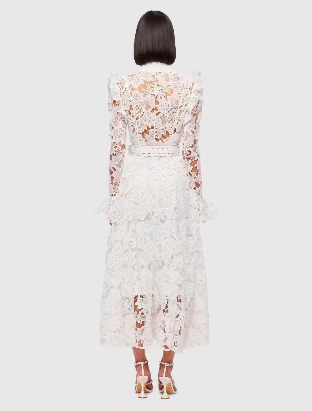 Women's Lapel Trumpet Sleeve Hollow Elegant Dress