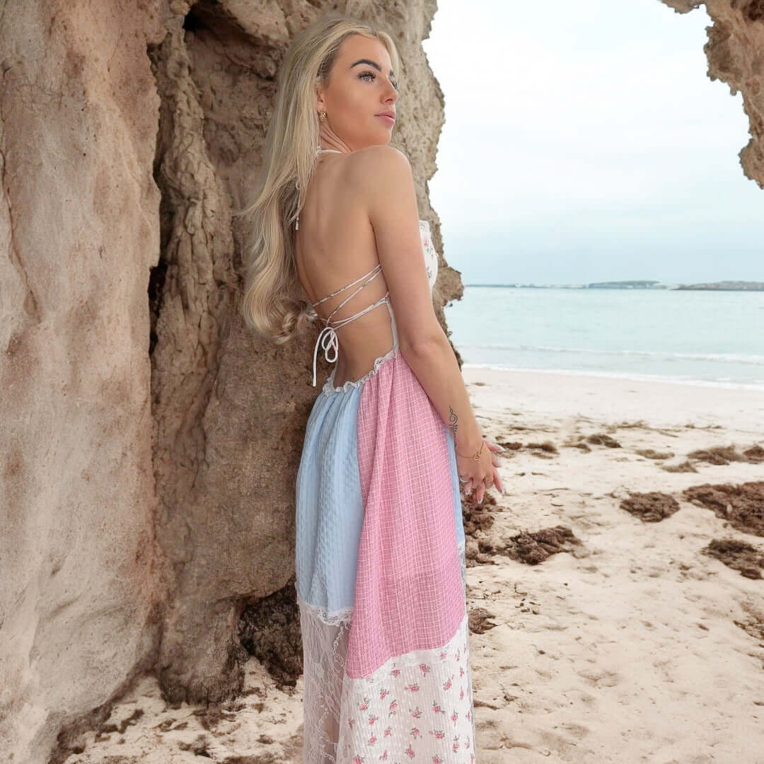 Women's Cross Halter Neck Sleeveless Stitching Dress