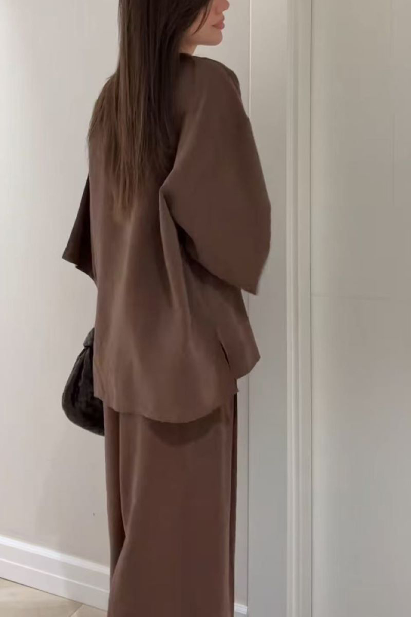 Women's Fashion Solid Color Irregular Waist Wide Leg Pants