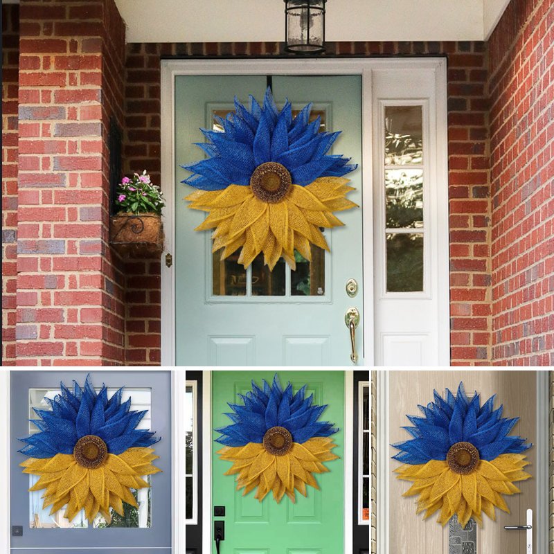💛Ukraine Flag Sunflower Front Door Wreath-Stand With Ukraine🙏💙