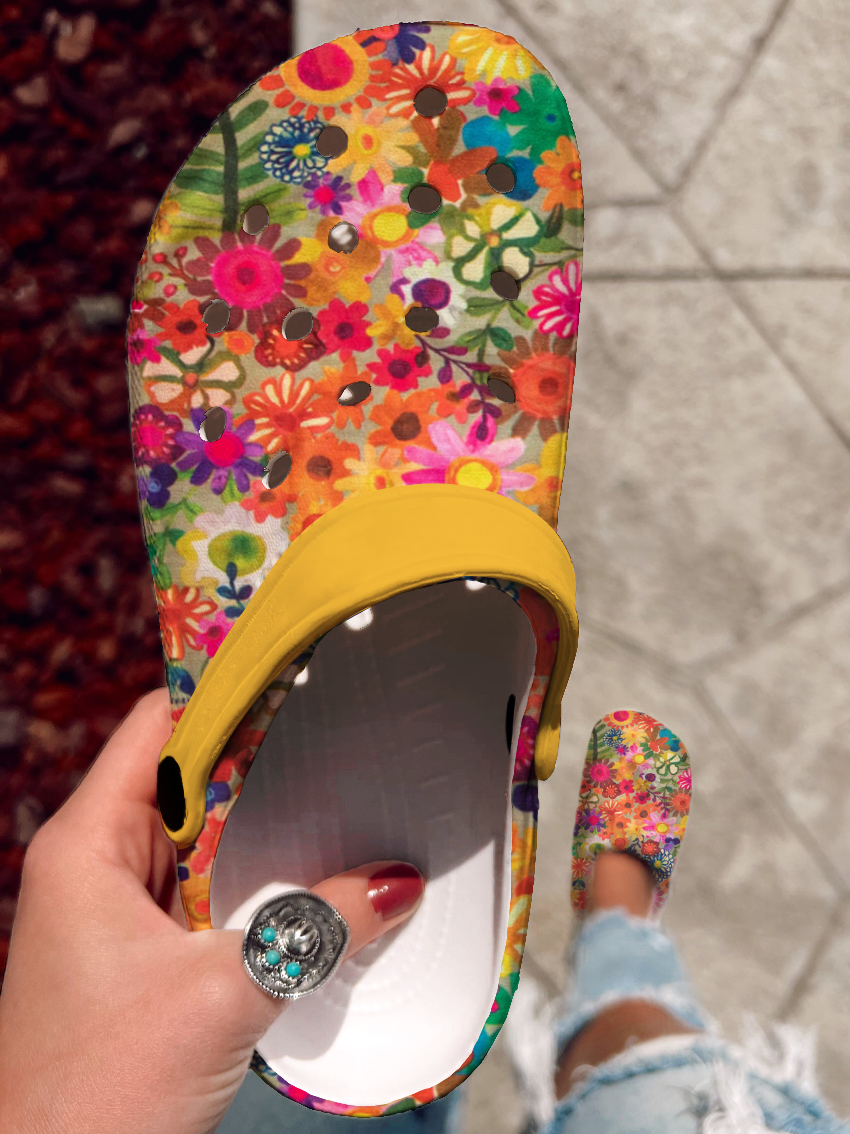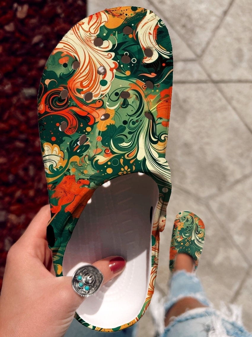 Floral Animal Patchwork Pattern Art Print Casual Hole Slippers